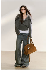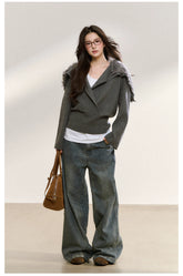 Gray Wrapped Knit Short Cardigan