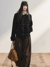 A sleek, tailored black duffle coat designed for fall and winter. Crafted with a structured silhouette and classic horn-button closure, this coat delivers a refined yet versatile look that pairs effortlessly with everyday outfits. The fitted cut enhances the waistline while providing warmth and comfort, making it ideal for both casual and urban styling. Timeless in design, it’s a wardrobe essential for the cold season.