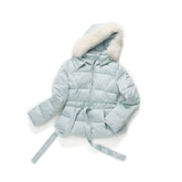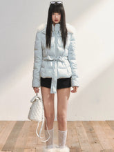 Two-Tone Belted Detachable Fur Hood Down Jacket