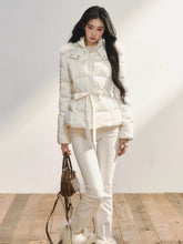Blending the practicality of a down jacket with refined tailoring, this piece captures the balance between vintage warmth and modern slimness. Designed with a detachable faux fur-trimmed hood and adjustable waist belt, it allows versatile styling — from a structured, feminine silhouette to a relaxed, casual fit. The down-filled shell ensures superior insulation for cold-weather comfort, while the sleek, two-tone design adds visual depth and sophistication. This jacket redefines winter outerwear with both elegance and functionality, offering a “one-coat, many-looks” versatility.
