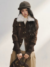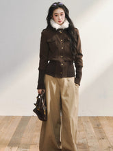 Vintage-Inspired Brown Fleece Lining Wool-Blend Jacket