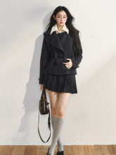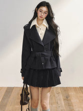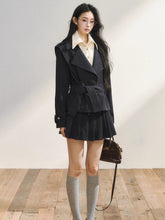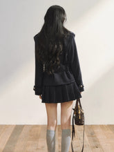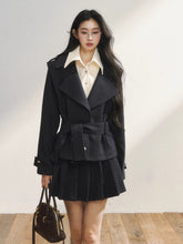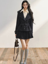Drawing inspiration from classic trench silhouettes and infused with romantic feminine details, this two-piece set blends timeless elegance with modern charm. The tailored quilted blazer features a cinched waist that accentuates the feminine form, paired with a matching short skirt for a balanced “vintage-meets-sweet” aesthetic. The wool-blend fabric ensures warmth and structure, while the contrasting collar adds a playful touch. Designed for versatility, it transitions effortlessly from polished daily wear to refined winter outings — embodying the perfect harmony of grace and style.