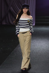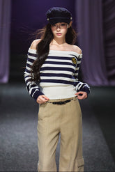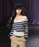 Inspired by timeless maritime style, this off-shoulder striped sweater exudes relaxed sophistication. The shoulder-baring neckline enhances the collarbone and elongates the neck for a feminine yet confident look. Crafted from a soft viscose-blend knit, it features moderate elasticity and a slim silhouette that flatters the figure while ensuring comfort and warmth. Ideal for pairing with high-waisted trousers or skirts, this piece brings an effortless nautical charm to your winter wardrobe.