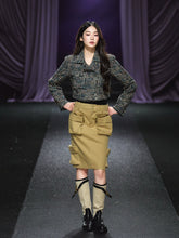 This chic cropped jacket reinterprets classic tweed styling with modern sophistication. Crafted from 100% premium polyester fabric, it features an elegant asymmetric placket and structured tailoring that subtly accentuates the waistline. The textured tweed-inspired weave adds depth and refinement, while the moderate thickness ensures warmth without bulk. Perfect for pairing with skirts or tailored trousers, it brings a timeless yet fashion-forward statement to any winter wardrobe.