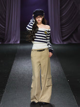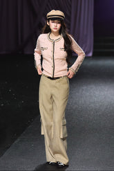 Tweed Braided Belt High-Waist Wide-Leg Pants