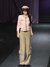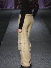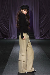 These chic high-waist straight-leg pants combine utility-inspired design with refined sophistication. Crafted from a structured acetate-blend fabric, they feature a woven tweed-style braided belt and practical pocket details for a polished yet relaxed aesthetic. The high-rise waist enhances the leg line, while the wide-leg silhouette offers comfort and elegance. Perfect for year-round wear, these trousers effortlessly balance texture, structure, and versatility—ideal for creating modern smart-casual looks.
