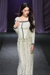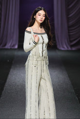 Tweed-Inspired V-Neck Wide-Leg Jumpsuit
