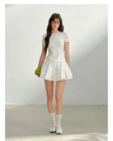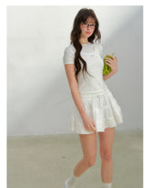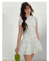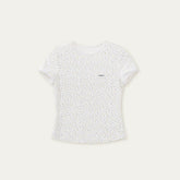Inspired by the light freshness of green apples in early summer air, this floral T-shirt features a soft white base scattered with delicate pink, yellow, and purple blossoms. The gentle floral pattern feels like spring petals woven into fabric, bringing a naturally fresh and youthful aesthetic to everyday wear.