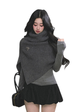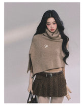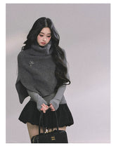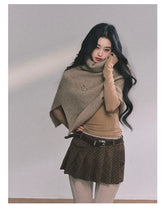 This refined autumn knit top features a French-inspired high neckline paired with an elegant cape-style overlay, creating a graceful and intellectual silhouette. The design combines a slim inner knit base with a softly draped poncho layer, adding dimension and warmth while maintaining a light, sophisticated feel. Ideal for late-autumn styling, it offers both comfort and polish, making it suitable for commuting, daily wear, or elevated casual looks. The overall aesthetic is calm, mature, and effortlessly chic.