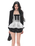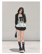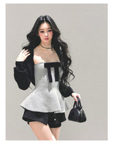 This French-inspired two-piece top set combines a delicate princess-style tank with a lightweight open-front cape, creating a refined yet romantic autumn look. The inner sleeveless top features a clean, feminine silhouette that softly contours the body, while the outer cape layer adds dimension and elegance with effortless drape. Designed for versatile styling, the set balances sweetness and sophistication, making it suitable for daily wear, transitional seasons, and layered outfits with a polished finish.