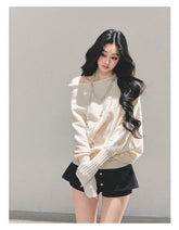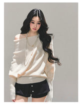 This autumn knit sweater embodies a clean minimalist aesthetic with a gentle, feminine touch. Designed with a subtle off-shoulder neckline, it softly highlights the collarbone while maintaining an elegant and relaxed silhouette. The loose yet refined fit creates a cozy, effortless drape, delivering a warm and sweet temperament that feels both understated and stylish. Ideal for autumn daily wear, commuting, or casual outings, this piece balances comfort with soft sophistication.