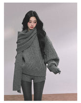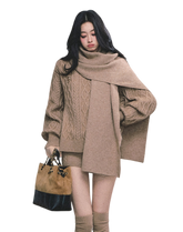 This women’s American-style knit three-piece set delivers a cozy yet effortlessly stylish winter look inspired by overseas student life. The set includes a soft knitted scarf, a relaxed-fit sweater with dropped shoulders, and matching high-waisted knit shorts. Designed for both comfort and style, the silhouette feels laid-back while maintaining a fashion-forward edge. Perfect for autumn and winter layering, the coordinated set can be worn together for a complete outfit or styled separately for versatile everyday wear.