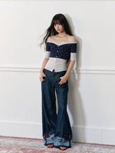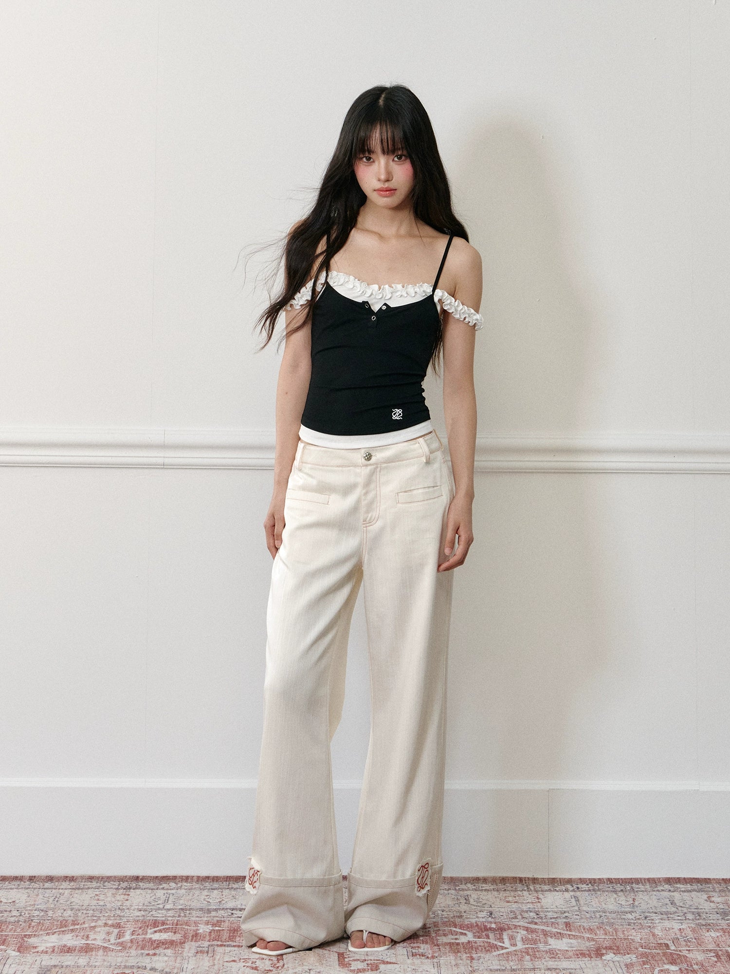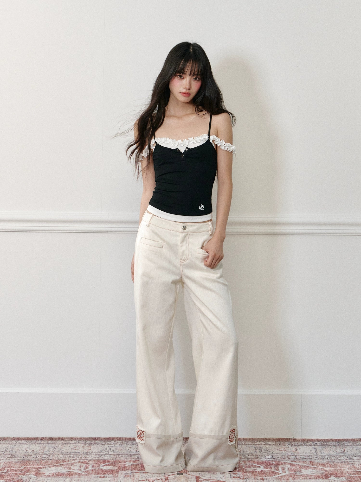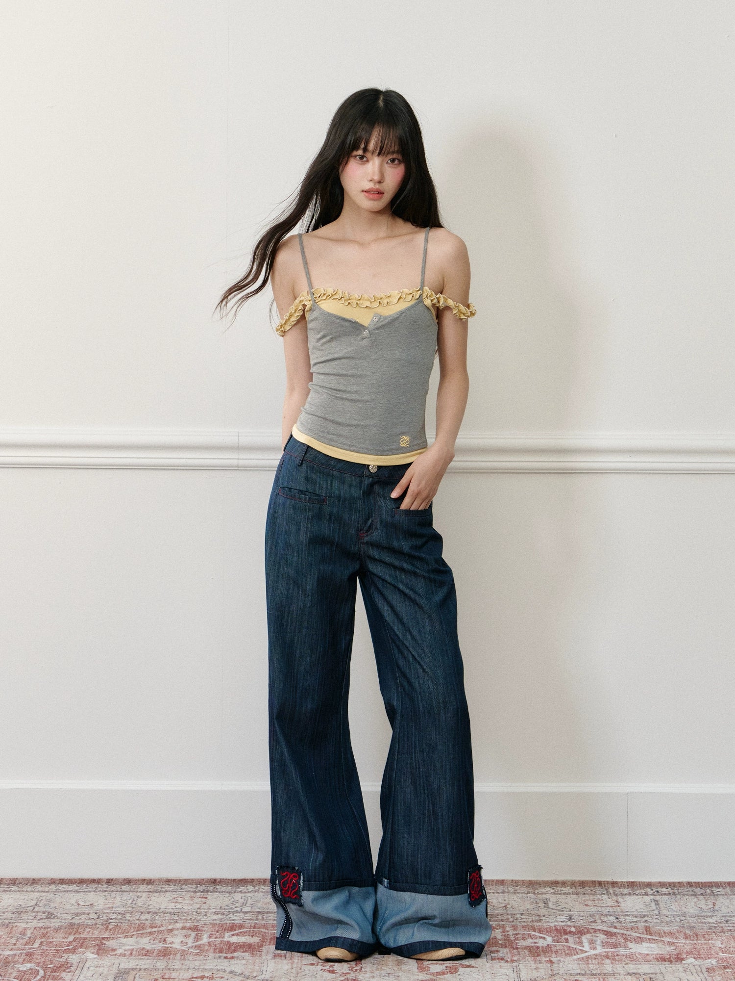 Applique Embroidered Cuffed Color - Block Jeans - CHINASQUAD