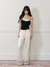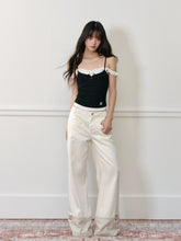 These are applique embroidered cuffed color - block jeans. With a unique design combining applique embroidery and color - block elements, they offer both style and comfort.