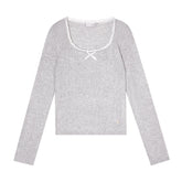 A delicate U-neck knit top featuring lace-trim detailing, bow embellishments, and subtle cutout accents. Designed in a slim, body-flattering silhouette, this piece blends soft femininity with a refined minimalist aesthetic. Its lightweight knit structure provides comfort and stretch, making it ideal as an inner layer for daily wear, layered outfits, and pure-aesthetic looks.