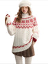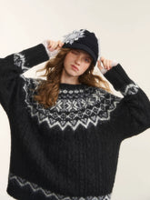 A relaxed, cozy knit sweater crafted with a classic Fair Isle snowflake pattern and cable-knit texture. Designed with a timeless crew neckline and a laid-back silhouette, it delivers an effortless lazy-chic aesthetic perfect for winter layering and holiday styling. Soft to the touch with a warm, comfortable feel, this sweater balances seasonal charm with everyday versatility.