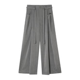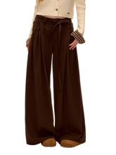 A refined take on vintage-inspired casualwear, these pleated wide-leg trousers feature a relaxed silhouette with an adjustable tie-waist design for a customizable fit. Crafted from a soft, drapey fabric with a subtle sheen, the pants flow elegantly with movement while offering a slimming effect. Perfect for pairing with knits, shirts, or blazers — an effortless balance of comfort and sophistication for everyday wear.