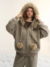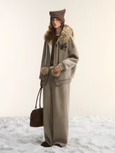This retro-inspired two-piece set features a textured plaid patchwork jacket with a soft, plush hand feel, paired with clean-cut straight-leg pants for a balanced casual silhouette. The jacket is designed with striped detailing and a cozy faux-fur style collar, adding warmth and visual depth while maintaining a relaxed, modern fit. The matching straight-leg pants offer comfort and versatility, creating an easy everyday set that blends vintage charm with contemporary leisure style. Ideal for casual outings or styled separately for multiple looks.