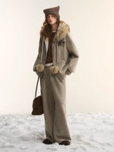 Plush Plaid Patchwork Jacket & Straight-Leg Pants Set