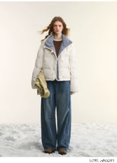 A versatile, double-sided short puffer jacket designed for both warmth and style. Crafted with a clean stand collar and a relaxed silhouette, this piece offers two distinct looks: a minimalist solid side and a chic checkered side, making it easy to switch up your outfit. Filled with premium 90% white duck down, it provides exceptional insulation without bulk. The soft, padded construction creates a cozy “marshmallow” effect, delivering comfort and modern streetwear appeal.