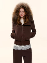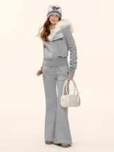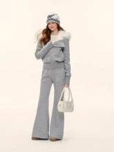 This AsGony two-piece set is designed with an American vintage aesthetic, combining comfort and flattering structure. The hooded sweatshirt features a waist-cinching cut with a plush fur-trimmed hood, creating a slimming silhouette while maintaining warmth. Paired with matching flared sweatpants, the set elongates the legs and delivers a relaxed yet styled look. Thick, fleece-lined construction makes it ideal for cold-weather wear, blending casual ease with a refined retro vibe.