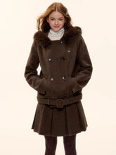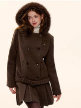 This AsGony short coat is designed in a rich mocha-brown tone, embodying the signature “Maillard” vintage aesthetic with a refined high-street feel. Featuring a structured hood with plush fur trim and a classic double-breasted front, it delivers both warmth and timeless style. The adjustable waist belt defines the silhouette, balancing a cozy oversized feel with a flattering, feminine shape. Thick and insulating, this coat is an ideal statement piece for autumn and winter layering.