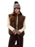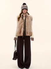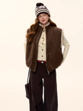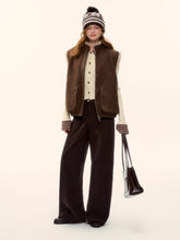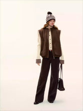 This women’s sleeveless vest features a reversible design that allows it to be worn on both sides, blending vintage charm with modern versatility. Crafted in a warm wool-blend with eco-friendly faux fur textures, it delivers a refined “Merlot brown” retro aesthetic while remaining lightweight and easy to layer. The clean, sleeveless cut enhances styling flexibility, making it suitable for transitional seasons and effortless everyday wear. Elegant yet practical, this piece balances warmth, texture, and timeless appeal.