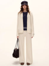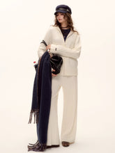 Wool Blend Cable Knit Zipped Hoodie & Wide-Leg Pants Set