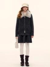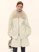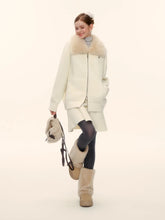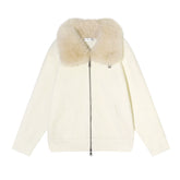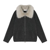A refined knit jacket designed with a relaxed, elevated silhouette, featuring a classic turn-down collar accented by soft faux fur trim. Crafted with a wool-blend yarn and finished with a front zip closure, this piece blends warmth with understated sophistication. The loose fit and clean structure deliver an effortlessly cozy, premium look, making it ideal for autumn and winter layering—perfect for both casual styling and polished off-duty wear.