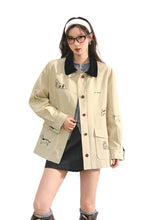 Break the monotony of conventional trench coats. The bright contrasting color collar instantly enhances the styling recognition. The well-proportioned medium-long length design optimizes the body proportion, with a remarkable slimming effect; The loose H-shaped version is very friendly to all body types, cleverly hiding belly fat and arm flab, allowing the wearer to confidently show a good posture. The checkered cuff details add points; The cute thick-thread embroidered puppy pattern injects flexibility and vitality into the trench coat, breaking the dullness.