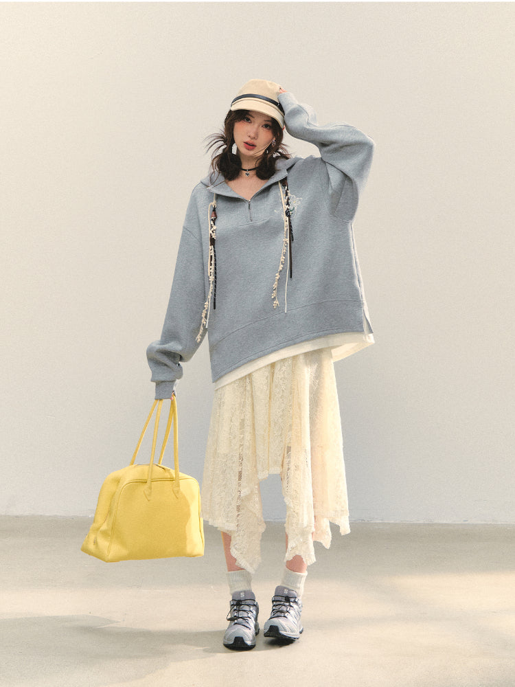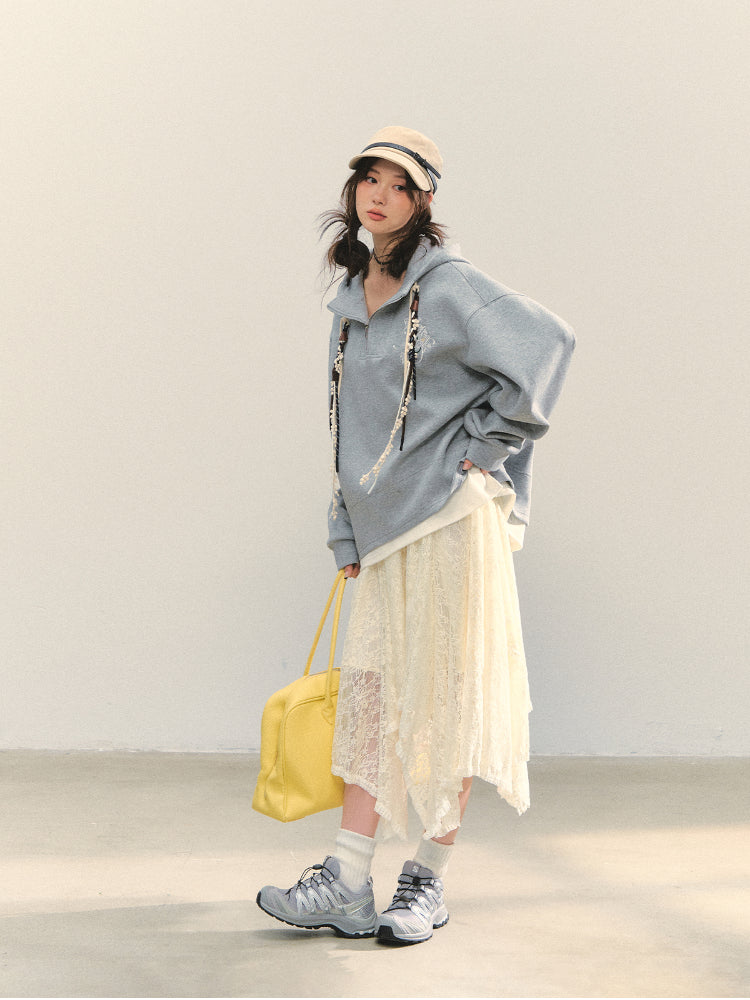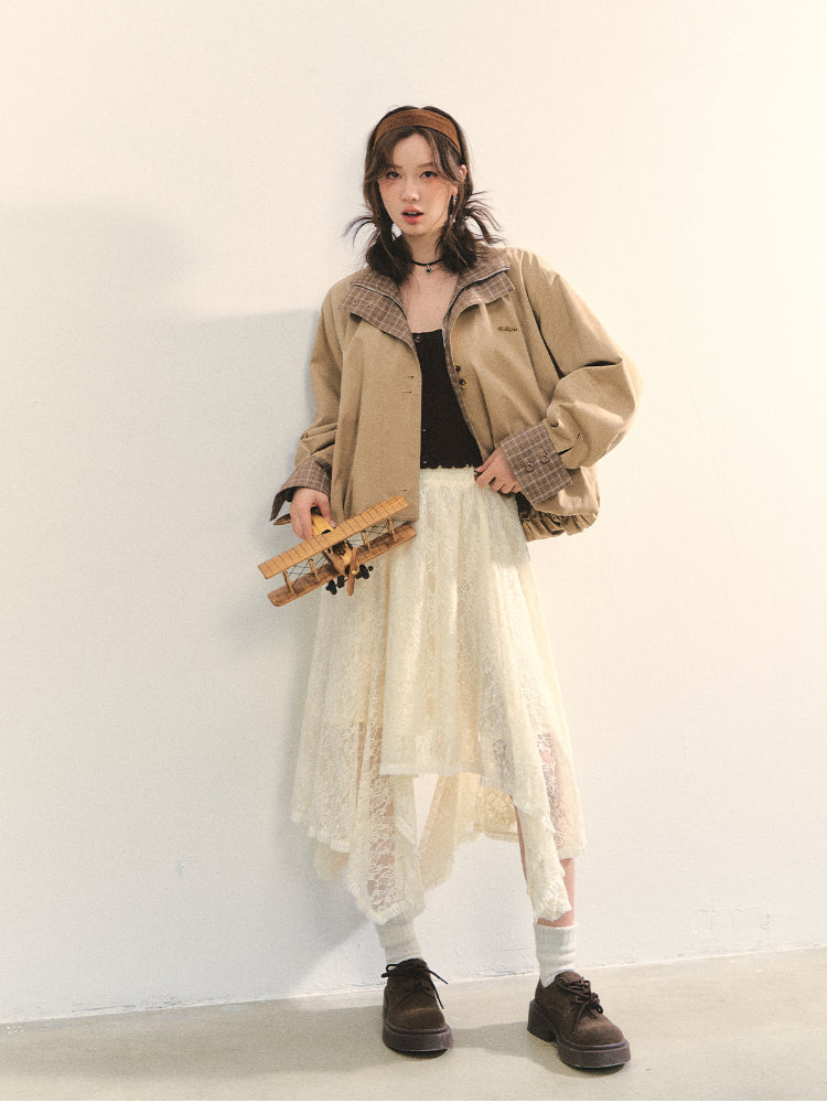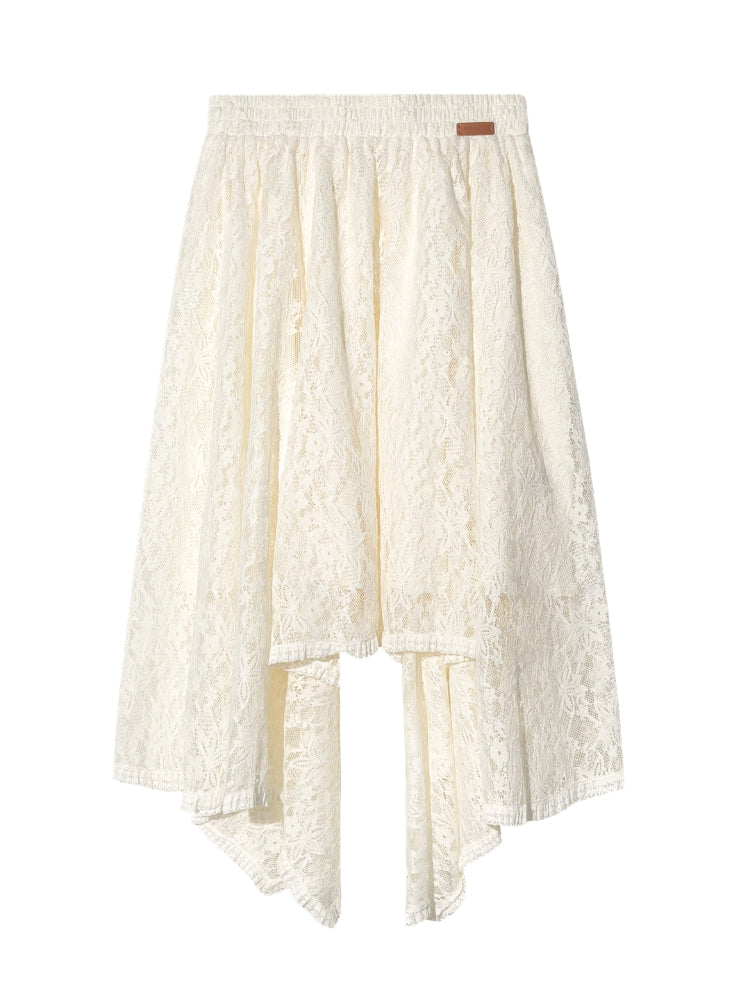 Beige Lace Irregular Hem Midi Skirt - CHINASQUAD