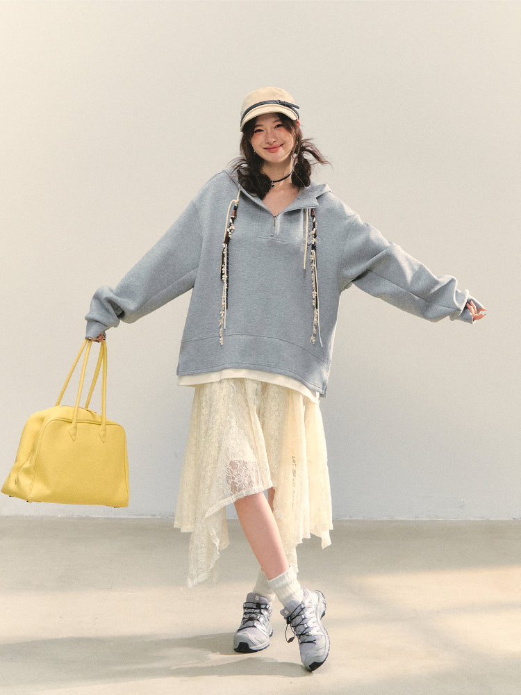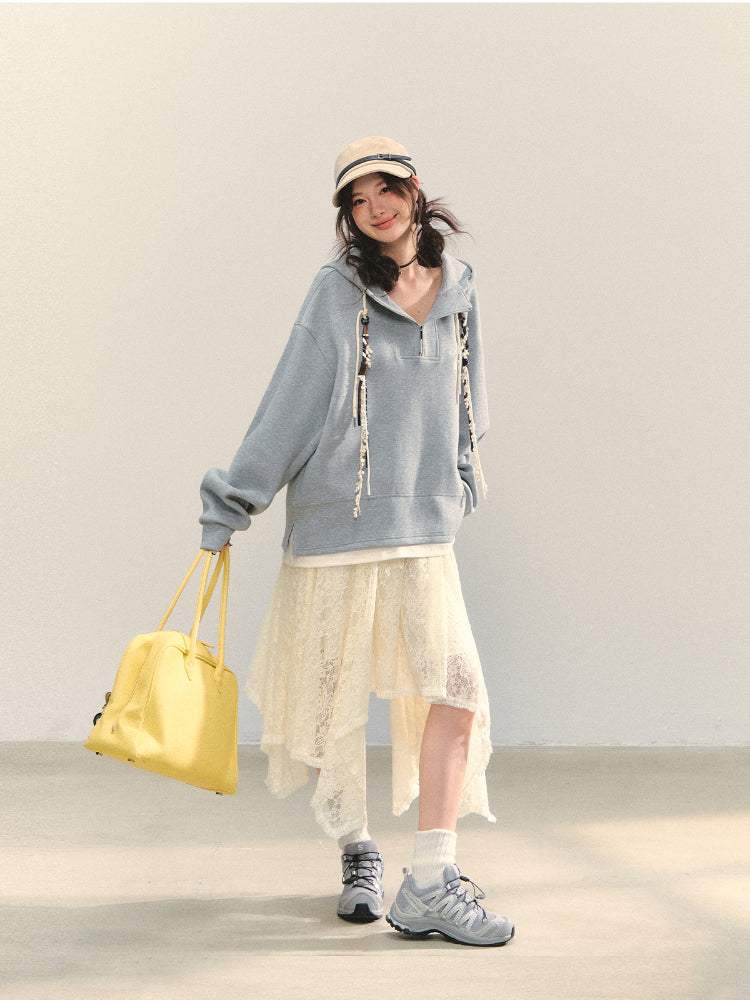 High-quality lace fabric with slight elasticity, comfortable without restriction; classic beige color is elegant, soft and not picky about skin tones, suitable for various occasions. High-waist design raises the waistline, lengthens the proportion of the lower body to make the legs look longer, creating the visual effect of long legs; the elastic waist fits various body shapes, easy to put on and take off, avoiding discomfort. The irregular hem breaks the monotony of traditional long skirts,when walking; with a thoughtful inner lining, can be worn with peace of mind.