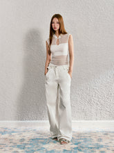 Beige & Purple Hollow-out Disk-button Knitted Vest - CHINASQUAD