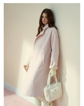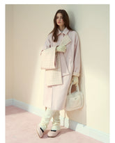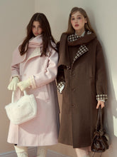 This coat is crafted from a premium wool-blend fabric with a subtle luster, offering a warm, enveloping feel and structured silhouette. The elegant plaid patchwork on the collar, cuffs, and inner lining adds a refined retro charm, blending classic tailoring with modern softness. The warm texture of wool contrasts beautifully with the check pattern, creating a multi-layered vintage aesthetic. Featuring a detachable collar design and multiple pockets, it balances function with refined style. Coordinated color blocking with delicate plaid accents enhances its timeless elegance. The relaxed H-line cut flatters various body types, while the soft structure allows effortless layering for a cozy yet sophisticated winter look.