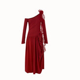 Sweet yet refined, the “Berry Glaze” dress redefines effortless femininity with its soft stretch-knit texture and asymmetric off-shoulder design. Crafted to gently contour the body, it features a fluid drape that enhances natural curves while maintaining exceptional comfort. The vivid red hue evokes confidence and allure, making it a statement piece for both casual elegance and evening charm.