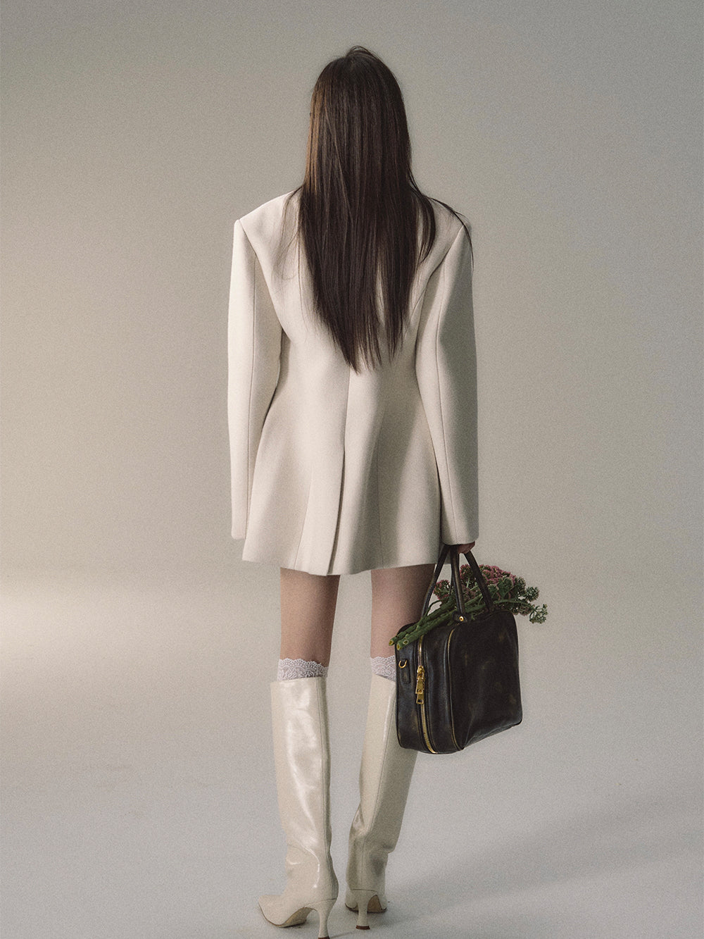 Black & Apricot Double-breasted Wool Blazer - CHINASQUAD