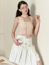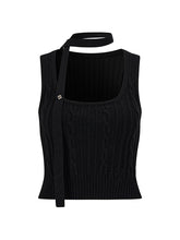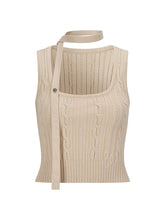 Black & Beige Ribbon Knit Tank Top - CHINASQUAD
