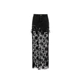 Black & Blue Lace Panel Denim Maxi Skirt - CHINASQUAD