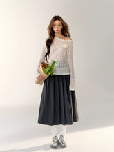 Asgony, Black & Gray Hollow Knit 3D Floral Sweater