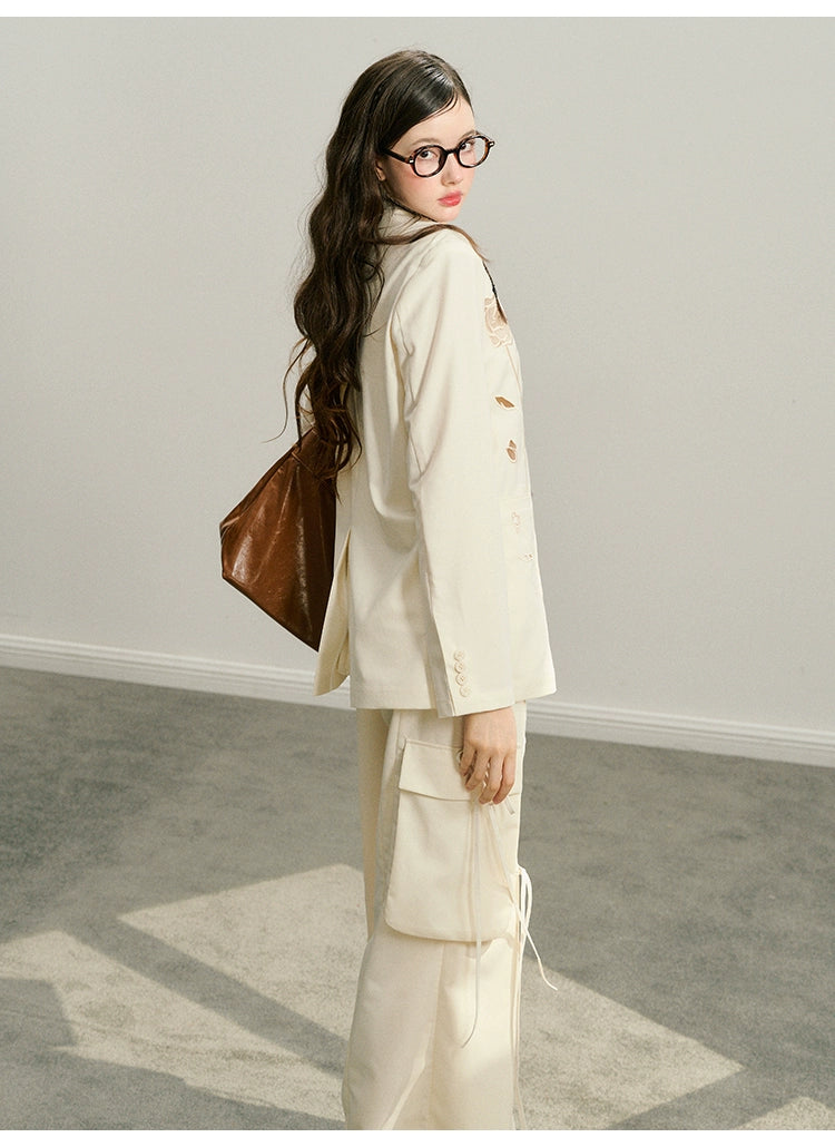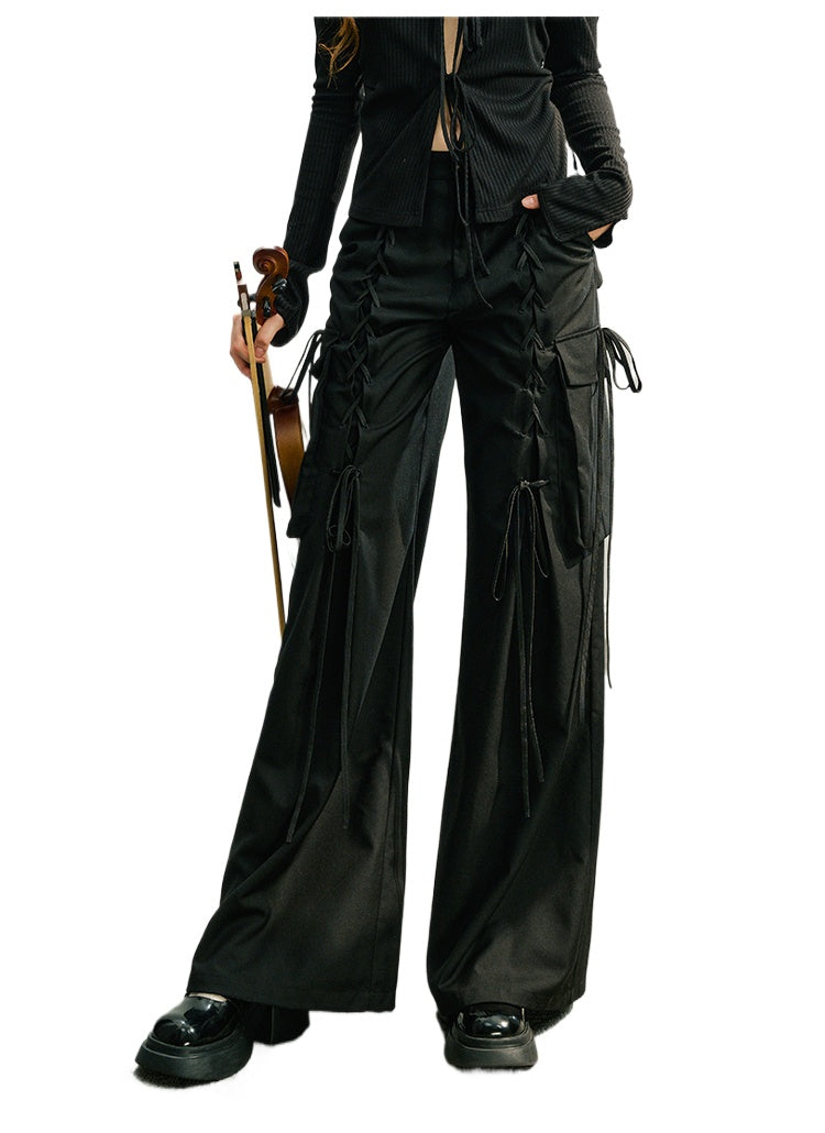 GROUP OF UNIVERSE,Black & Ivory White Tie-Waist Wide-Leg Pants
