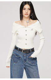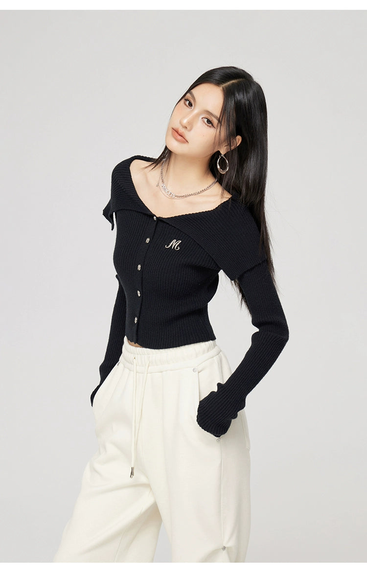 Black & Off-white Turn-down Collar Sweater - CHINASQUAD