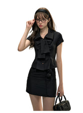 Black Striped Collegiate-style Butterfly Collar Shirt - CHINASQUAD