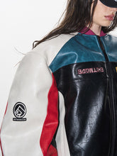 From the EXITMODE by BLINDNOPLAN 24AW collection, this color-block embroidered moto jacket fuses rugged streetwear attitude with utilitarian warmth. Designed with multi-panel construction, it features contrast color blocking and bold embroidery that elevate its visual depth. Crafted from a mix of polyurethane and polyester fabrics, the piece is insulated with warm padding for cold-weather wear. The oversized silhouette and slightly structured shoulders channel a modern moto aesthetic while ensuring full comfort and mobility.