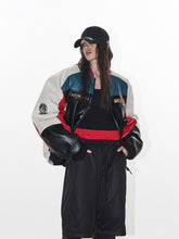 Color-Block Embroidered Moto Padded Jacket