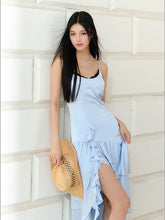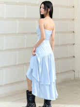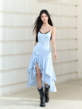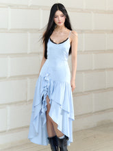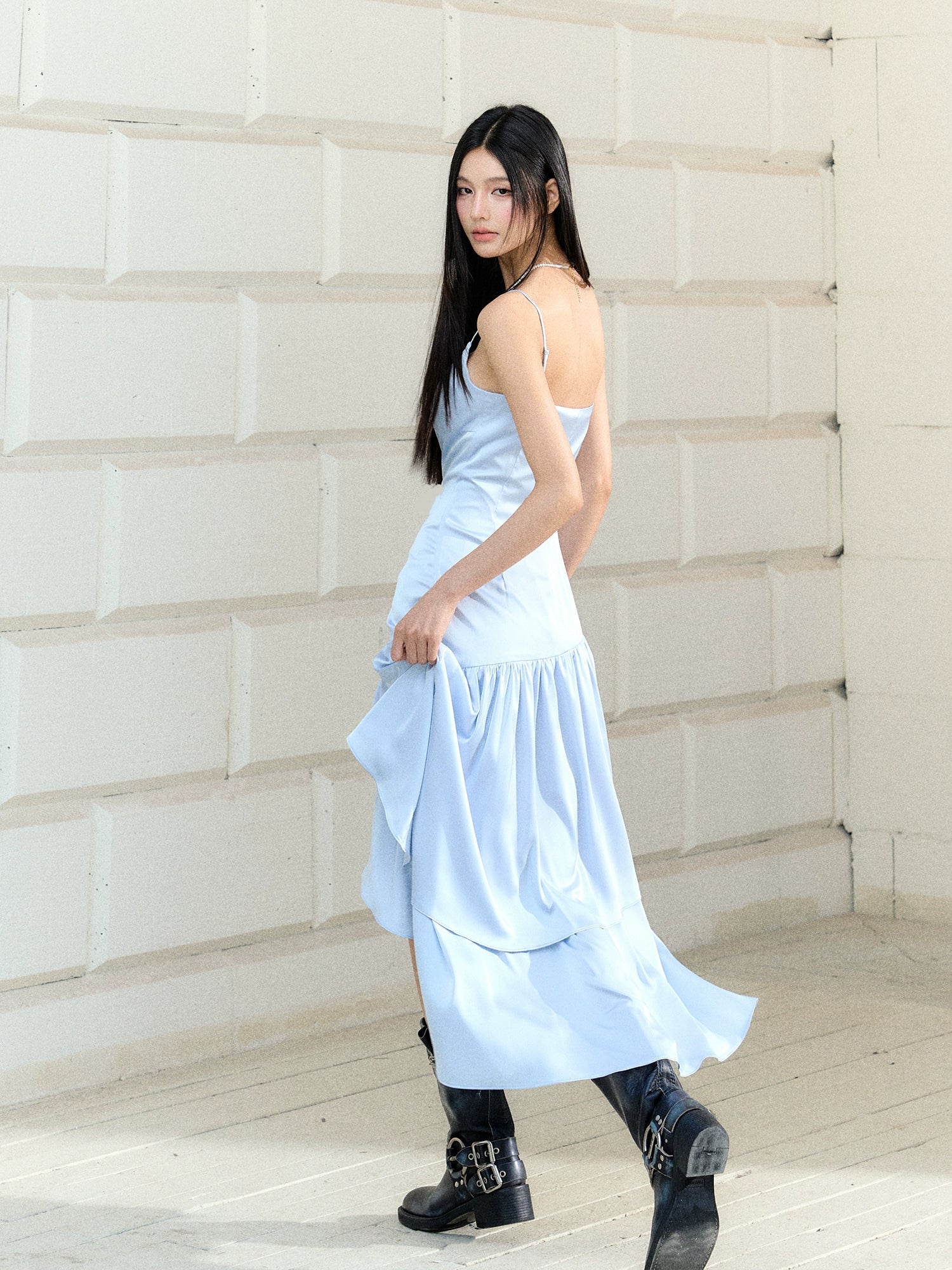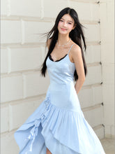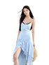 Blue Satin Lace Trim Dress - CHINASQUAD