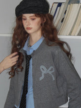 A charming cropped knit cardigan featuring delicate bow appliqué embroidery and a classic round neckline. The refined French-inspired design combines soft textures with a sweet, feminine touch, creating a look that’s both graceful and versatile. Its fitted cut and short length highlight the waistline, making it ideal for pairing with high-rise skirts or trousers for an effortlessly romantic silhouette.