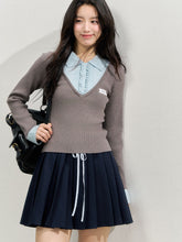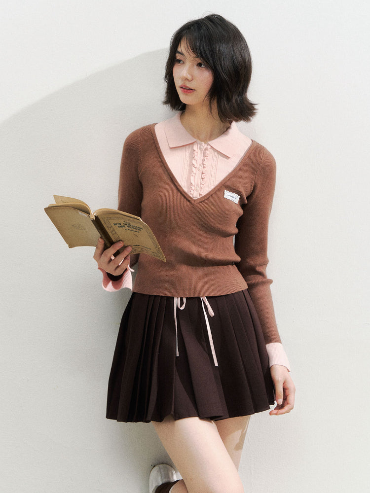 Brown & Navy College Pleated Skirt - CHINASQUAD