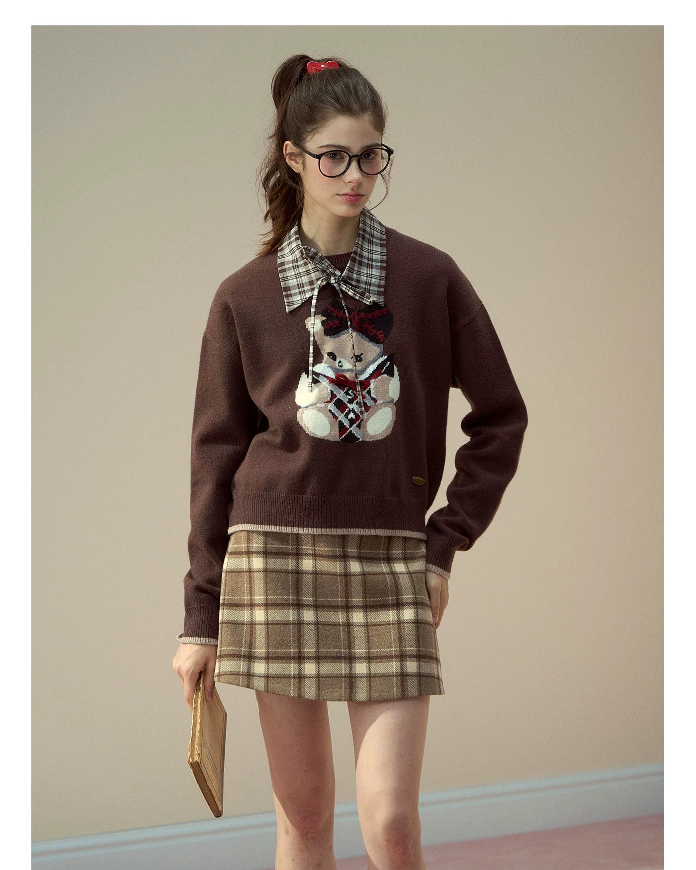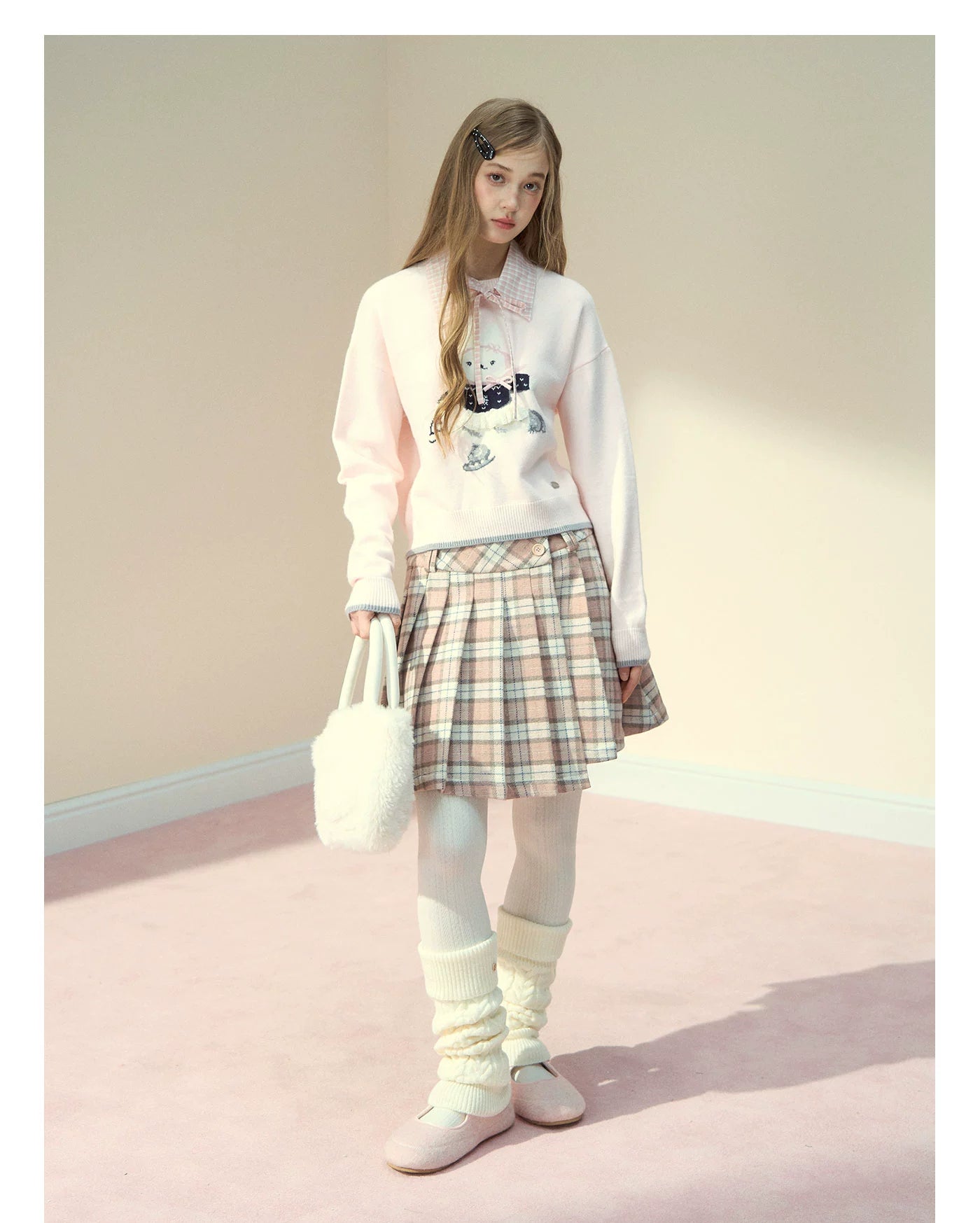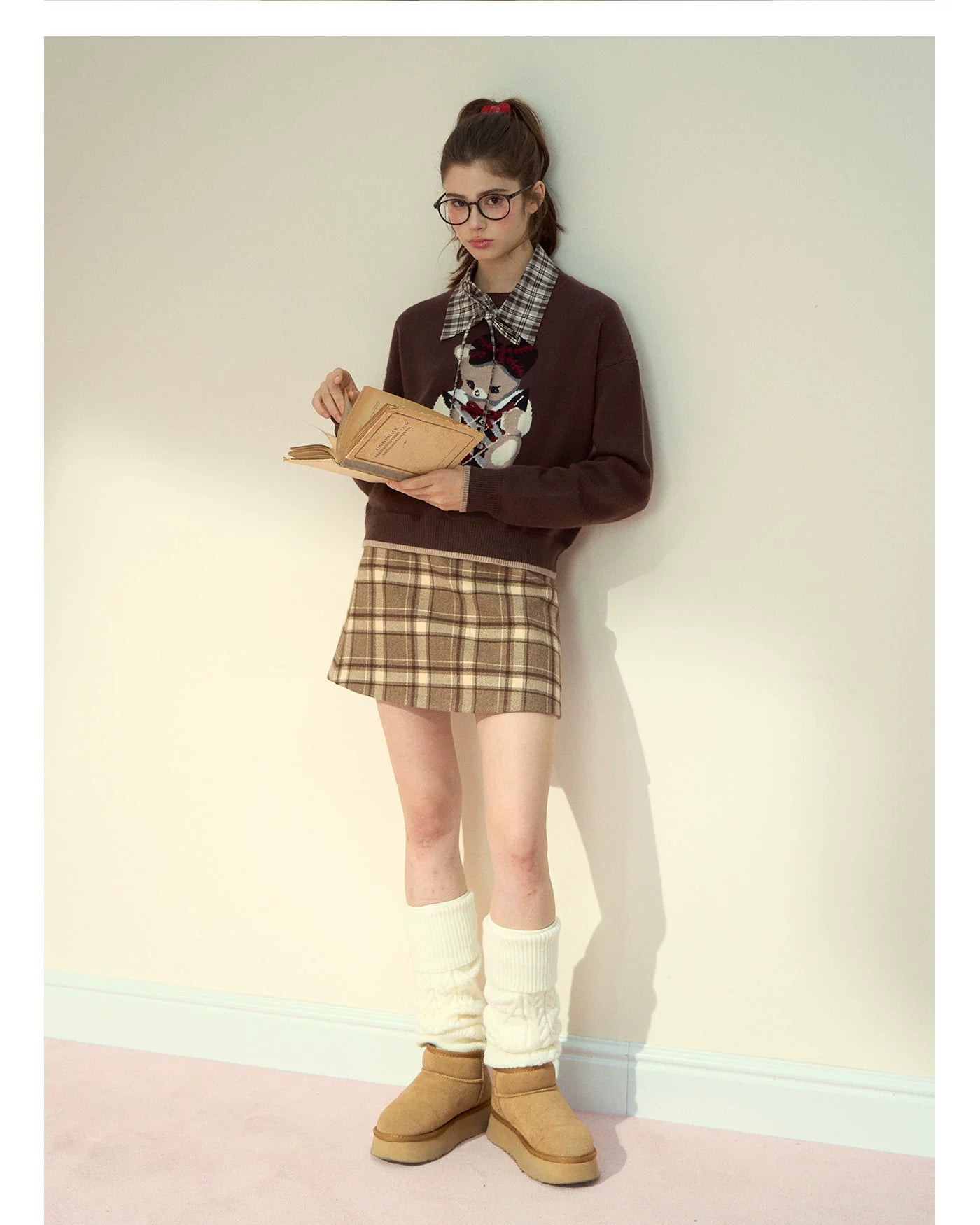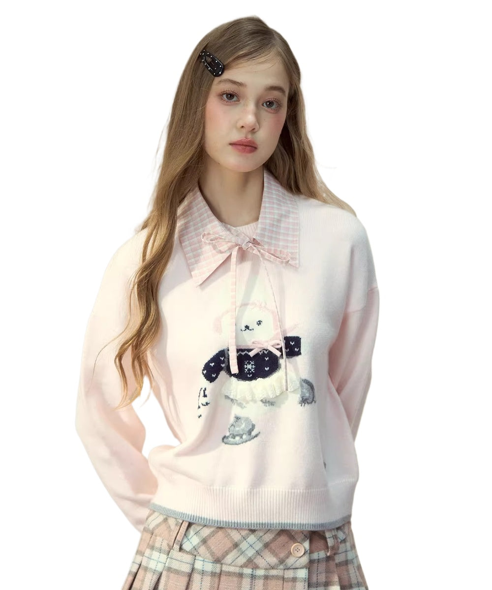 A playful preppy-style sweater featuring a detachable faux collar design, accented with bunny embroidery details. Perfect for layering in autumn and winter, combining warmth with youthful charm.