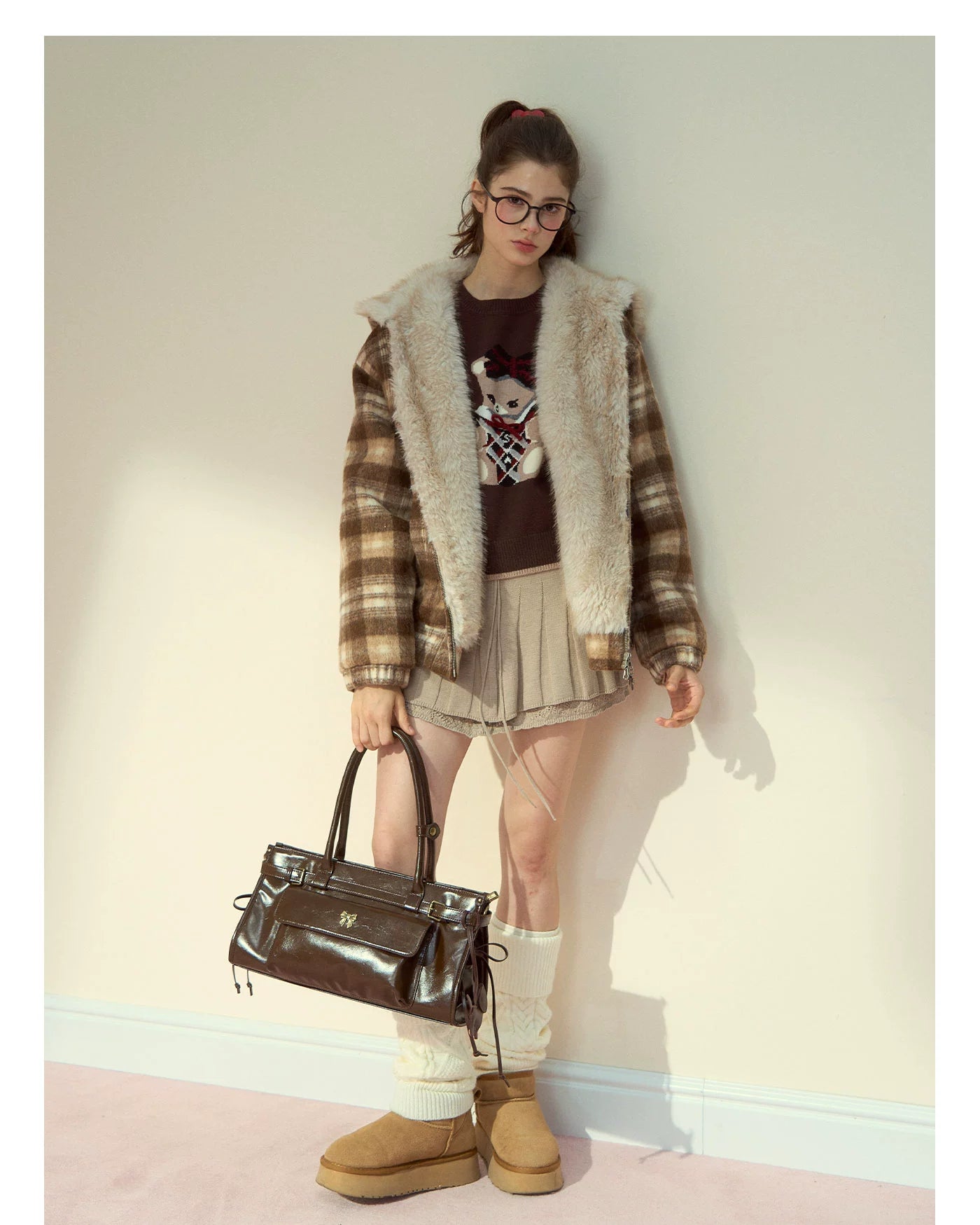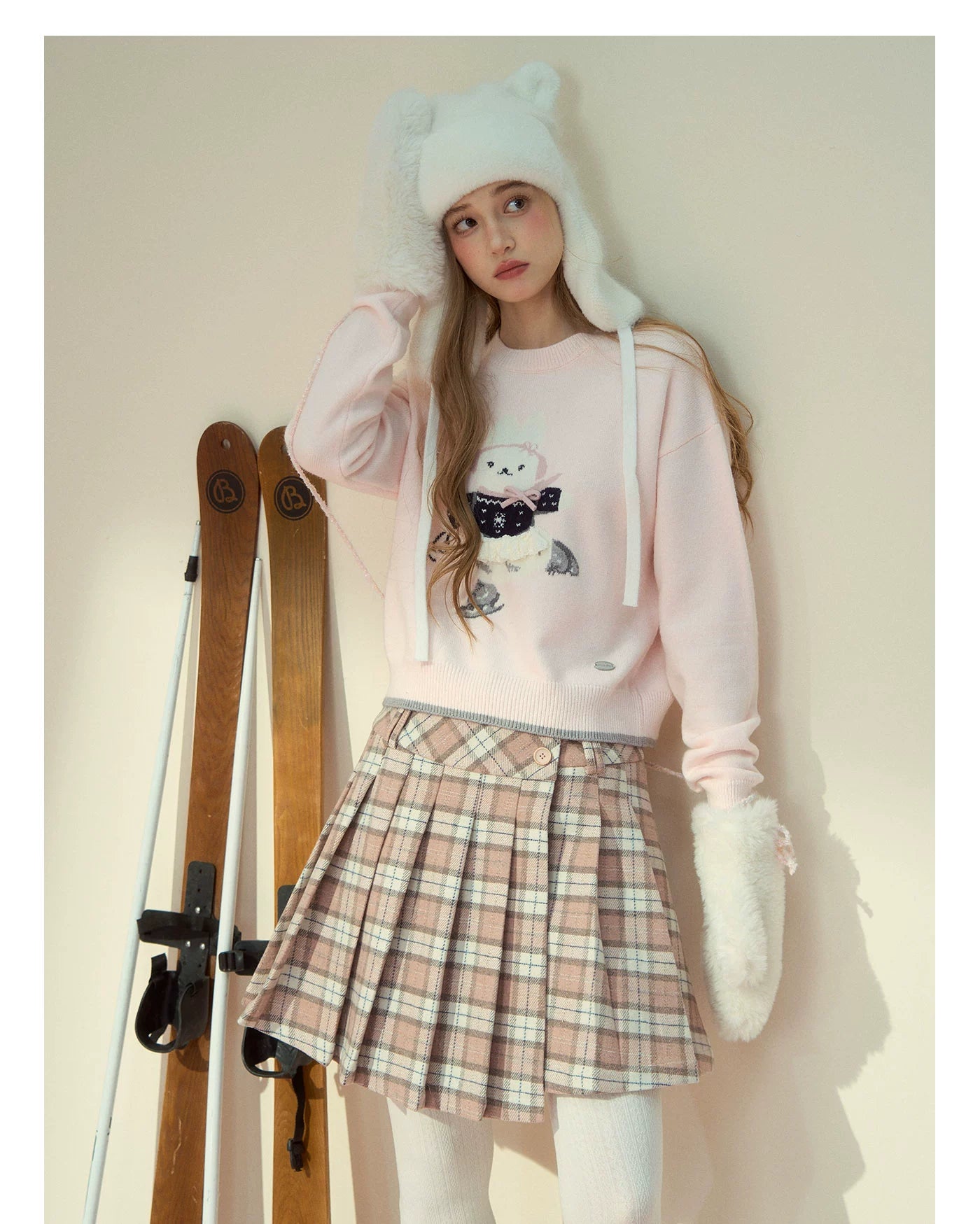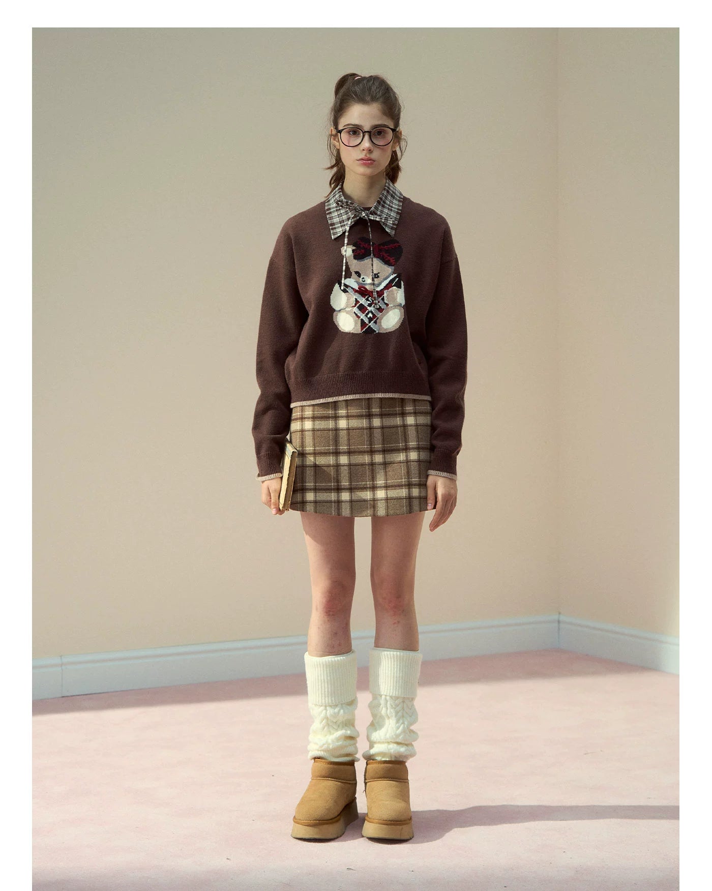 A playful preppy-style sweater featuring a detachable faux collar design, accented with bunny embroidery details. Perfect for layering in autumn and winter, combining warmth with youthful charm.