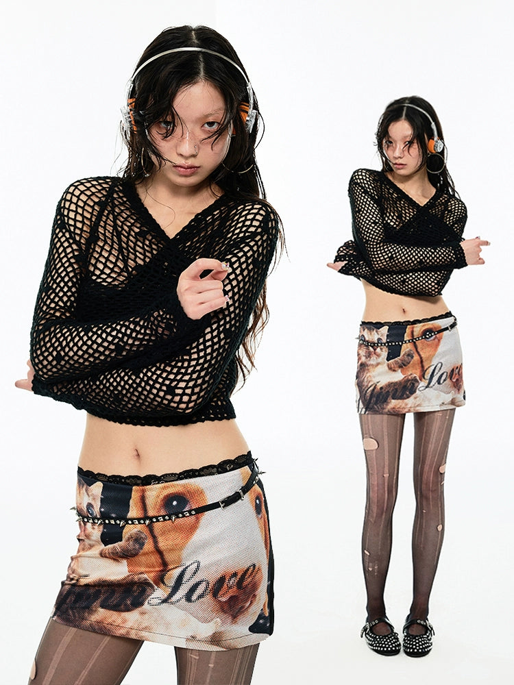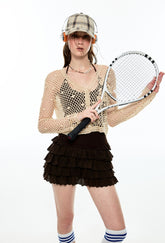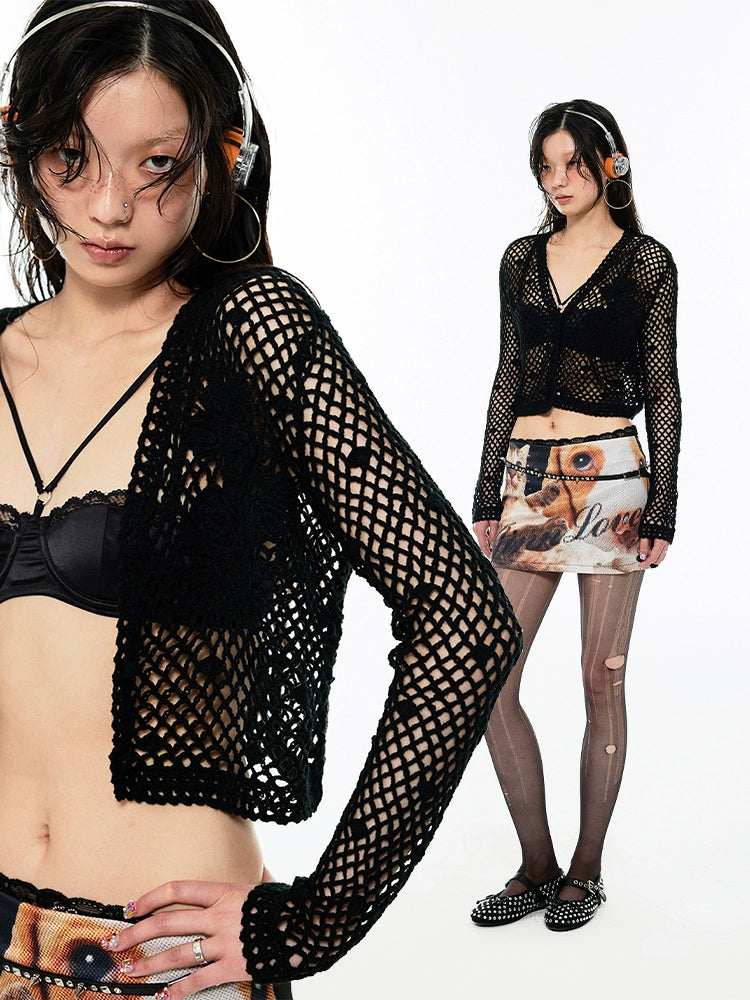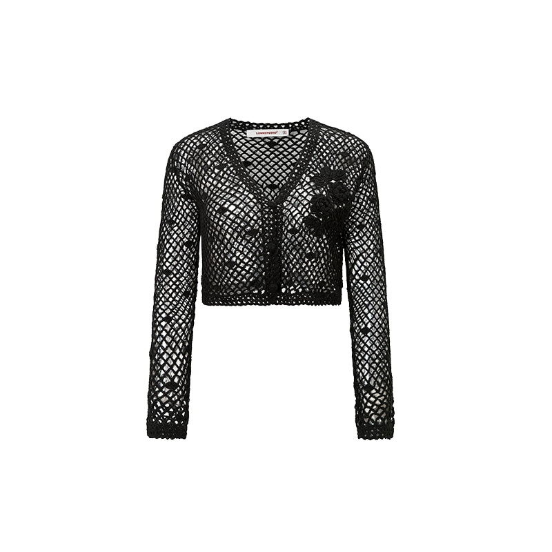 Camel & Black Lace V-neck Cardigan - CHINASQUAD